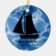 Ornamento personalizado de navegação Natal 20XX em um fundo estelar. Todo texto personalizável, frente e verso!