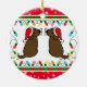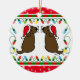 Ornamento de Papais noeis de Labradores de Chocolate Gêmeo de Natal. Cartoon Whimsy e fofo Labrador Retriever criado por Naomi Ochiai do Japão. Dons de diversão excelente para amantes de cães que adoram Labradores de Chocolate. :) Adoráveis Labradores de Chocolate estão olhando para trás com Papai Noel e bigodes!