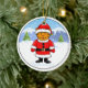 Uma pequena mesa laranja bonita vestida de Papai noel para todos os pequenos gatinhos. Design de LD Gonzalez, 2018.
