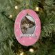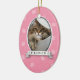 Mostre o quanto seu animal de estimação significa para você com este adorno divertido. A foto de um animal de estimação é realçada no quadro oval com seu nome impresso no cartaz abaixo. O fundo é uma mistura de círculos e estampas de pata escondido sobre o rosa pastel. Adicione qualquer mensagem ao contrário. Disponível em cores alternativas com produtos correspondentes.