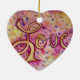 A palavra "Amor" se encurra em ouro de aquarela oscila contra um fundo rosa glamouroso. O trabalho de arte de amor vem com e sem brilho. As séries inspiracionais de pintura de palavras são tiradas do texto usado nas pinturas de anjo. "Eu escolho conhecer o amor" - Minha vida, Minha escolha "Na minha vida, eu escolho conhecer meu amor" - Sentir Beleza "Não pode aleijar o amor" - Que Cancer não pode fazer Estas imagens são desenhadas de forma a proporcionar reflexão e meditação sobre uma palavra solteiro. A ideia é pensar na pintura e vai ajudá-lo a ter uma atitude positiva associada a essa palavra que será emocionalmente curável para uma pessoa. Você também pode combiná-los para fazer sua própria série de palavras para meditação/ contemplação. Personalize este ornamento com seu próprio texto e imagens usando o botão "Personalizar".