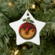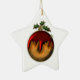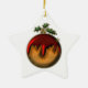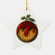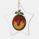 Um Enfeites de natal bonito, em forma de estrela, para a sua árvore de Natal, com um tradicional pudim de ameixa de vermelho e ouro, com um sorvete de preto no topo.