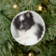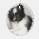 Ornamento pomeranian do cão do brinquedo preto e branco.