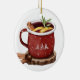 A aquarela digital pintada à mão ilustra uma bebida aconchegante de vinho enrolado de inverno servido numa caneca vermelha festiva com decorações de temas natalinos. a bebida é manchada com fatias de laranja, bastão de canela e um riso de rosmaninho. a caneca fica sobre uma porta copos de madeira, rodeada de pedaços adicionais de canela. Perfeito para designs de Natal, cartões de Natal, projetos de Ano Novo, ilustrações de receitas e decoração sazonal.