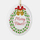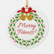 Coroa de Malhação feliz com chaleiraSinos personalizados cerâmicos ornamento de natal! Este design de ornamento de círculo duplo apresenta uma coroa de festas com cavilhas e um arco vermelho! Personalizei-o com um nome e o ano, por uma questão de excelente! Adição perfeita à sua coleção de ornamentos ou um presente para qualquer um que esteja na malhação! Para outros itens de correspondência de feriados com este design ou outros presentes temáticos de malhação de excelente, visite nosso compro!