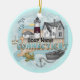 Ornament de farol de Connecticut por ArtMuvz Illustration. Farol de aquarela igual a camisa, roupa, roupa náutica, roupa de colecionador de farol. Dons de farol são uma forma excelente de mostrar a alguém que você se importa, especialmente se eles amam o oceano, a costa, ou os próprios faróis. Faróis são símbolos icônicos de esperança, orientação e segurança, e eles podem fazer um belo e significativo presente para qualquer ocasião. Não importa qual seja o seu orçamento, há certamente um presente de farol perfeito para a pessoa que você tem em mente. Para personalizar, adicione seu nome ou adicione texto. Personalize este ornamento de farol para torná-lo exclusivo seu ou para oferecer como presente personalizado