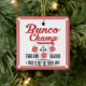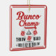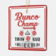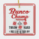 Decore sua árvore do feriado com seu possuem muito o ornamento do feriado de Bunco. O estilo do design é o vintage que inclui um sino de Bunco e um dado de Bunco no design. O texto lê: O campeão de Bunco, duro do lance, um Bunco é somente um lance afastado. Design de Bunco do divertimento.