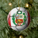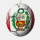 A bandeira de Peru gravou através de uma bola de futebol em um ornamento cerâmico frente e verso.
