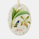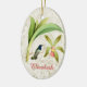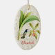 O ornamento apresenta uma ilustração vintage de um beija-flor verde e branco com uma cabeça azul violeta vibrante amassada perto de uma orquídea rosa, sobre um fundo de textura de mármore claro dourado. Adicionar nome e data; clique em "Personalizar" para alterar a fonte e a cor do texto. Opções de texto na frente e atrás, ou remover texto para uma adição elegante a qualquer árvore natalícia com tema de natureza. Presente perfeito para amantes de beija-flores.