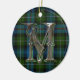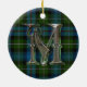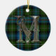 Ornamento ornamentado da letra M do monograma, com a xadrez de tartan do clã de MacKenzie como um fundo. Grande ornamento de vista da herança de família. Faz um grande presente ornament e a decoração para outros usos em torno da casa.