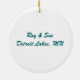 Traga muito mais alegria natalina para sua árvore com um enfeite de cerâmica personalizado. Adicione fotos de família, imagens e mensagens pessoais em ambos os lados deste enfeite. Um fio de ouro facilita pendurar esta lembrança fantástica.