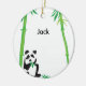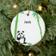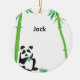 Um urso de panda bonito que come o bambu que senta-se ao lado das árvores em uns enfeites de natal!