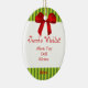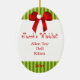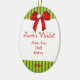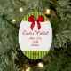 Um grande ornamento para recordar o que o pouco uns desejou para Christmases perto. Caracteriza listras verdes na parte superior e na parte inferior. Um gráfico de uma fita vermelha senta-se na parte superior. O centro é branco com texto vermelho. Você personaliza seu pequeno sua lista de presente nela.