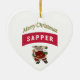 Feliz Ornamento de Sapper de Natal. Este ornamento em forma de coração é decorado de um lado com a guia Sapper Militar, Papai Noel, e as palavras "Feliz Natal". O reverso é decorado com crachás de cachorro e as palavras "Eu Amo Meu Soldado."