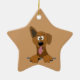 Uns desenhos animados marrons misturaram a raça ou o cão da probabilidade de intercepção com a uma orelha flexível e a uma orelha espera acima lovingly com sua língua que pendura para fora neste ornamento. A parte traseira está vazia, mas você pode adicionar uma mensagem se você quer clicando no botão da personalização. Você pode igualmente mudar a cor do fundo esta maneira se desejado.