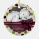 Este lindo design de ornamento personalizado de fotos em feriado, feito por The Spotted Olive™ , apresenta um fundo elegantemente resfriado com uma bela imagem de bolinhas, fita e as palavras "Feliz Natal". Personalize com sua foto, ano, nomes ou outro texto especial. Copyright 2010 | Azeite em vaso™ | Todos os Direitos Reservados O Spotted Olive™ é sua fonte on-line para designs engraçados, bonitos e legal em cartões de visitas de quadril, artigos de papel tradicional e presentes únicos.