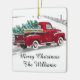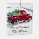 O ornamento da árvore de Natal de caminhão vermelho monograma com seu nome familiar.