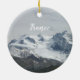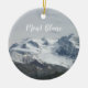 Este ornamento apresenta uma imagem impressionante do Monte Blanc de capa neve a uma distância em um dia nublado. Esta fotografia foi tirada em Meribel, França.