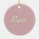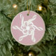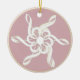 Rosa ouro com borda dourada. Personalize a parte de trás deste ornamento com um nome ou mensagem. Colchões de árvores formam um padrão de flocos de neve.
