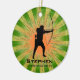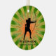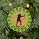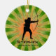 Archery Personalizado Ornament Natal 20XX. Um Archer se posiciona contra um fundo verde e laranja de explosão de estrelas. Todo texto personalizável, frente e verso!