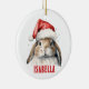 Adicione um pouco de alegria à sua árvore de férias com este ornamento personalizado de coelho de Natal! Apresentando um coelho fluffy a aquarelas vestindo um chapéu vermelho de Papai Noel e o nome do seu filho em vermelho arrojado, este ornamento cerâmico faz um coração alarmante para amantes de os animais, bebês, ou o primeiro Natal do bebê. Um presente doce e pessoal que será precioso ano após ano.