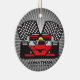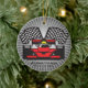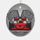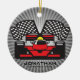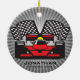 Ornamento personalizado do carro de corrida contra um fundo de explosão. Todo texto personalizável, frente e verso!