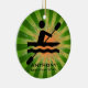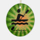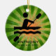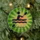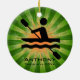 Kayaking Personalized Ornament Natal 20XX. Um kayaker em movimento contra um fundo verde/laranja de explosão de estrelas. Todo texto personalizável, frente e verso!