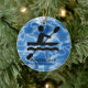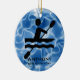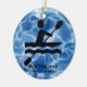 Kayaking Personalized Ornament Natal 20XX. Um kayaker em movimento contra um fundo de água azul e ondulado. Todo texto personalizável, frente e verso!