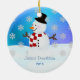 Apenas adicione um nome ou uns nomes e um ano à parte dianteira da parte traseira deste ornamento bonito do boneco de neve.