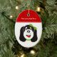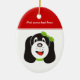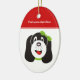 Ornamento personalizado de filhotes de bobo feliz, com um filhote de bobo com arco verde na cabeça.