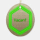 Os hexágonos de estrutura de fios nas cores "neon" indicam a disponibilidade de espaço no qual se encontra pendurado. Um lado do medalhão tem um hexágono verde com a palavra "Vacant" - Outro lado tem hexágono vermelho com "Occupied". Fundo é um gráfico de linho bronzeado.