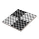 Um padrão de verificação preto-e-branco é alternado com uma cinza e um padrão de verificação branco em cada um dos quatro cantos. Divertido e clássico ou moderno, como design de arte ou de tabuleiro de xadrez. Também pode ser um padrão de corrida ou xadrez. Disponível na sua escolha de 2 tamanhos.