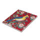 Esta vibrante azulejo de chinoiserie apresenta uma ave amarela crested, presa em um galho florescente contra um fundo vermelho rico. O design incorpora motins clássicos chineses, incluindo peônias e folhagem estilizada, criando uma peça elegante e visualmente impressionante. Perfeito por adicionar um toque de charme oriental a qualquer espaço.