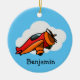 Pequeno ornamento cerâmico Design de avião vermelho com cor de fundo e personalização personalizáveis.