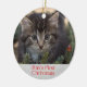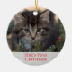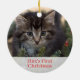 O Pet Cat personalizado ou o Kitten Holiday Photo Ornament, pode adicionar facilmente uma fotografia do seu próprio animal de estimação utilizando a função personalizar e editar texto para adicionar o seu próprio nome de animal de estimação, ano ou mensagem pessoal.
