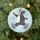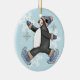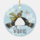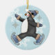 Fundo macio em flocos de neve em um ornamento de porcelana de pinguim duplo, com pinguins em skates de gelo! Este ornamento de férias de Skating Penguin é um presente perfeito para qualquer um que ama inverno, pinguins e patinação no gelo!