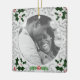 Natais vintages com padrão de cinza e folhagem clássica nos cantos. Coloque sua foto personalizada na frente e personalize o verso com seu nome e data em caracteres elegantes