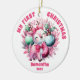 Primeiro Ornamento de Natal do Bebê de Reindeer Rosa.