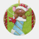 Um lindo e tão fofo ornamento de feriado com um rato marrom giro em uma estocagem de Natal!