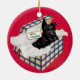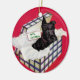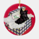 Um ornamento adorável com uma ilustração de um Schnauzer apresentou a um novo proprietario afortunado em uma caixa de presente.