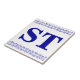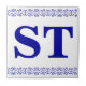 Azulejo Carta Vitoriano - Azul em branco com borda de uma impressora. Faça azulejos. Duas letras.