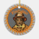 Um ornamento de bombeiro preto, ornamentos personalizados de bombeiros, t-shirts de bombeiros, roupa de bombeiros, presentes de bombeiros pela Ilustração ArtMuvz. O design ousado apresenta um bombeiro, o símbolo do serviço de bombeiros. Perfeito para bombeiros, suas famílias e amigos, ou qualquer um que queira mostrar seu apreço por esses heróis corajosos. PARA PERSONALIZAR, adicione seu nome ou adicione texto. Personalize este ornamento do Black Firefighter para torná-lo exclusivo seu ou para oferecer como presente personalizado