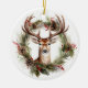 O enfeites de natal é mostrado em um impressão de coroa de veados de feriado. Personalize este item ou comprar como está.