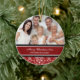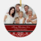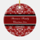 O Feliz Natal ornament customizável com sua própria foto de família no vermelho elegante, cor damasco floral clássica preto e branco. Um presente à moda do Natal para a família e os amigos ou para decorar sua árvore ou casa de Natal para os feriados.