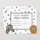 Cartão de festa de aniversário de adoção de um garoto do tema safari, com ilustração de leão e zebra. Dê animais recheados durante a festa como um favor do partido junto com este certificado!