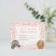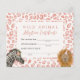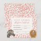 Cartão de festa de aniversário de adoção de uma garota do tema safari, com ilustração de leão e zebra com chapéu de flor e de festa. O fundo é um padrão-leopardo rosa. Dê animais recheados durante a festa como um favor do partido junto com este certificado!