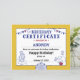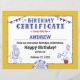 Aniversários são um marco anual que esperamos com ansiedade. Inicie essa celebração monumental com nosso Certificado de Aniversário Infantil da Casa de Festa do Circo do Carnaval Dourado. Personalize-o com os detalhes do seu filho!