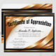 Design de ouro bonito e elegante e fitas pretas, perfeito para prêmio do receptor para apreciação ou qualquer realização. 8,5x11 Tamanho da carta, Personalize este certificado de apreciação com a sua conquista personalizável, a escola ou o nome oficial. Perfeito para recompensar uma conquista ou um trabalho de excelência bem feito em qualquer campo, curso, escola ou programa. Design personalizado clássico moderno e elegante. Jogadores premiados, voluntários, estudantes, funcionarios, treinadores, membros da equipe ou mvp com este certificado personalizado e personalizado. Adicione seu próprio texto on-line, sem quantidade mínima de pedido, certificados personalizados feitos para sua festa ou cerimônia de prêmios.