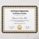 Certificado de Apreciação para Anos de Serviço