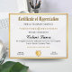 Certificado de anos de serviço - Professional Dourado & Black Design! _______________________________ Comemorar os marcos do funcionário com nosso Certificado de Apreciação, projetado para aniversário de trabalho e anos de reconhecimento de serviço. Este design profissional apresenta uma estrutura dourada e campos de texto personalizáveis para criar um diploma personalizado para o seu melhor funcionário. Perfeito para eventos corporativos, festas de aposentadoria ou cerimônias anuais de prêmio, este certificado permite adicionar nomes, datas e logotipos de empresas. Emparelhe-o com placas de prêmio ou placas de obrigado-você para um pacote de reconhecimento coeso. Peça agora e faça com que seja seu!